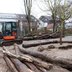 Die Pflastersteine wurden entfernt; die liegenden Hölzer platziert.