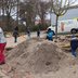 Das Gelände wird ausgekoffert, um Platz zu machen für die nächste Sandlieferung.