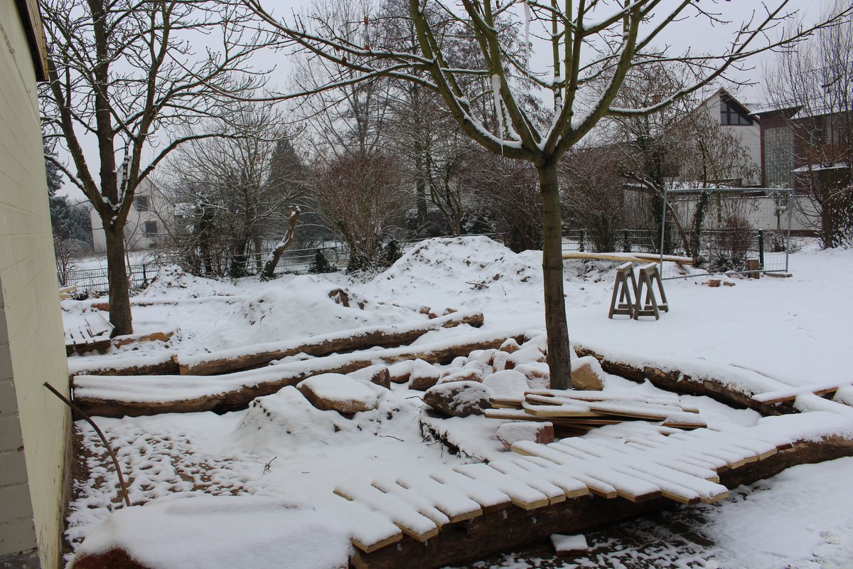 In der 2. und 3. Bauwoche stellt uns ein kleiner Wintereinbruch vor neue Herausforderungen. Doch wir bleiben guten Mutes und trotzen der eisigen Temperaturen.