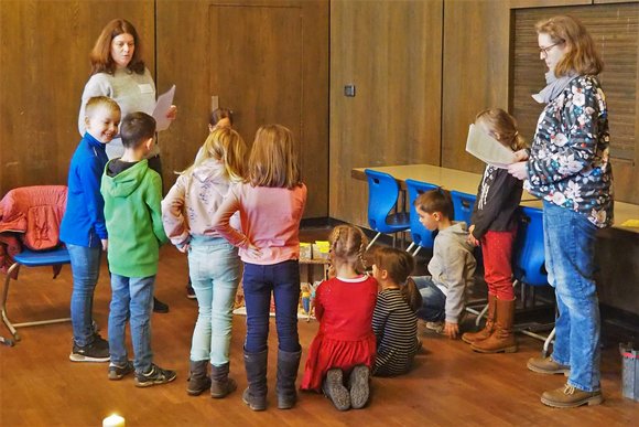 Gleich zur Begrüßung erhielten alle im Pfarrzentrum St. Jakobus passend zum Thema einen Stern und konnten dann bei Stehkaffee und Spielangeboten verweilen bis es um 10.30 Uhr in die Kirche zum Gottesdienst ging.
