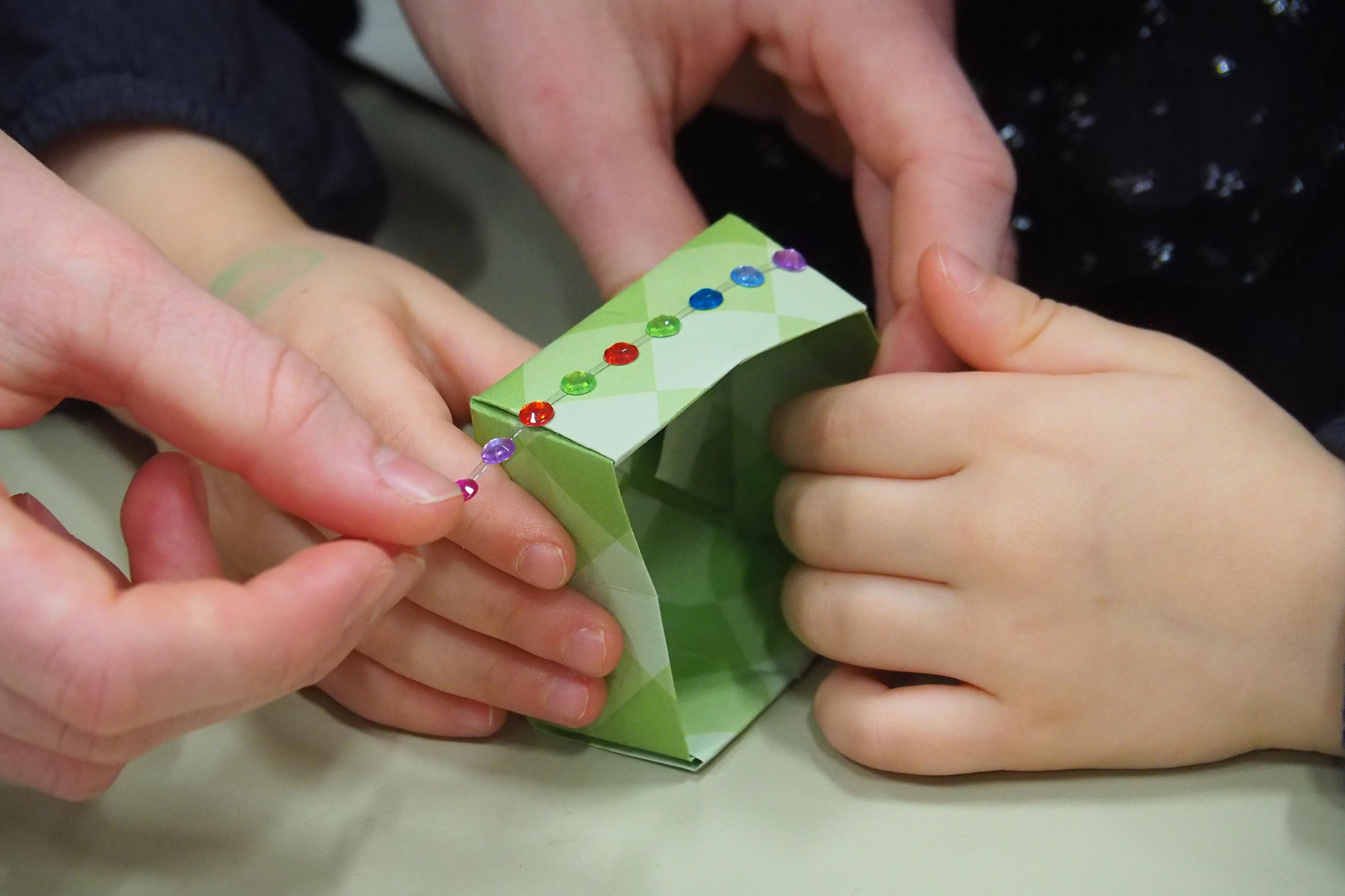 Den Kindergartenkindern wurde ein Buch von den Heiligen Drei Königen vorgelesen und dann durfte jedes Kind eine Faltschachtel mit Sternen bekleben. Dieses Kästchen konnte dann mit Gold, Weihrauch und Myrrhe gefüllt werden.
