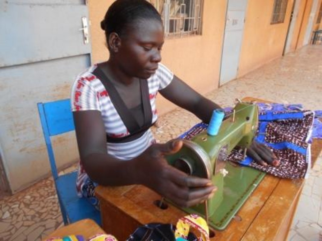 Als wir bei unserem Besuch letzten Februar mit Clarisse durch das Centre liefen, wunderte sich Regina über die zugehängten Nähmaschinen in der ehemaligen Nähschule. Clarisse erklärte, dass die Uralt-Maschinen zwar noch immer funktionieren, sie aber kein Geld mehr für die Ausbildung der Mädchen habe. Wir fanden das so schade, denn durch das Nähen könnten sich viele Frauen einen kleinen Erwerbszweig aufbauen. Regina, die eine große Liebhaberin der wunderschönen und farbenfrohen afrikanischen Stoffe ist, hatte die spontane Idee, die Frauen wieder an die Nähmaschine zu bekommen. Sie gab Clarisse Geld, damit sie auf dem Markt bunte Stoffe einkaufen kann und den Frauen, die bereits im Centre das Nähen gelernt hatten, den Auftrag, aus den Stoffen Einkaufstaschen zu nähen. Da bei uns ja zunehmend – zum Glück! – die Plastikbeutel und Plastiktaschen aus den Geschäften verschwinden oder Geld kosten, wären diese Taschen doch sehr hilfreich! Zu Hause wurden dann die passenden Labels‚ handmade im Centre Oasis‘ angefertigt und nach Afrika geschickt und beim nächsten Besuch in Burkina präsentierten die stolzen Frauen ihr Werk: 100 Taschen in den schönsten Farben Afrikas! Und wie stolz waren sie erst, als sie ihr erstes Gehalt ausbezahlt bekamen!