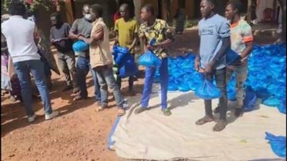 Es ist fast unglaublich, was in den vergangenen Wochen dank Eurer wieder so enormen Großzügigkeit an Weihnachtsgaben für die Menschen in Burkina Faso zusammenkam!! Daher hat Clarisse bereits vor zwei Wochen 5 Tonnen Reis und säckeweise Hirse geordert und mit ihren Helfern im Centre zahllose Säckchen Weihnachtsreis gepackt. Und wie schon in den vergangenen Jahren kamen vorgestern alle Patenkinder und ganz viele bedürftige Menschen ins Centre, um den Weihnachtsgruß der Freunde aus dem fernen Deutschland abzuholen. Die Patenkinder erhielten dabei auch neue Kleider und Schuhe, die Ihr bereits mit Eurem jährlichen Patengeld ermöglicht habt! Nach Weihnachten werden dann noch die unzähligen Hühner, Ziegen, Fahrräder und Eure sonstigen Gaben besorgt und überreicht.