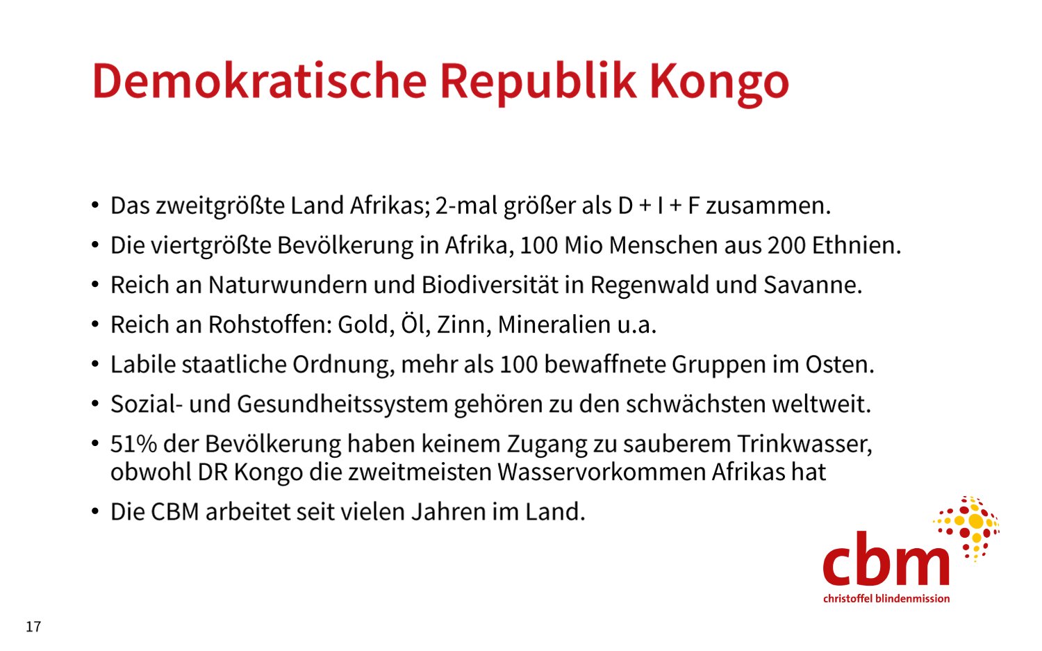 Auszüge aus der Präsentation von Christoph Müller von der Christoffel-Blindenmission (CBM) in Deutschland