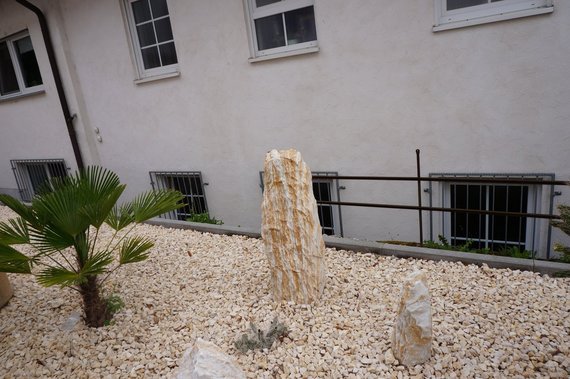 Nach diesem Ausflug in die Welt des weltliches Genusses ging es wieder zurück zu den geistlichen "Wurzeln", nämlich nach Venningen, das zu den Perlen der Pfalz gehört. Nach einer Besichtigung der Kirche St. Georg galt die Aufmerksamkeit dem angrenzenden Bibelgarten, den die Katholische Frauengemeinschaft Venningen angelegt hat und der an Pfingsten 2017 eingeweiht wurde. Der thematisch angelegte Garten greift verschiedene Bereich des Glaubens auf, wie beispielsweise einen "Schöpfungsbogen" mit einem Apfelbaum und bunten Blumen, eine "steinerne Wüstenlandschaft" mit Kakteen und einer Palme, ein Brunnen als "Wasser und Quelle des Lebens", eine Kräuterspirale für ein "Leben in Fülle", für die Ruhe am siebten Tag der Schöpfung eine "Bank", ein Plakat aus dem Misereor Hungertuch von Sieger Köder (1996) für die "Eucharistie", ein Kreuz für das "Leben und Sterben von Jesus", ein leeres "Grab" für die "Auferstehung" und Pfingstrosen für das "Pfingstfest, dem Geburtstag der Kirche".