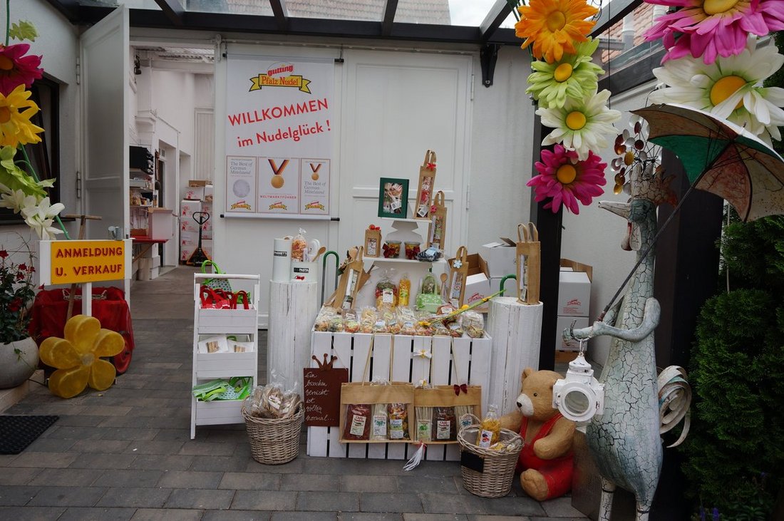 Nach diesen geschichtsträchtigen und geistlichen Begegnungen sah Pfarrer Peter Nirmaier die Zeit gekommen, etwas "Weltliches" zu besichtigen und ging mit den Schifferstadtern in die Nudelfabrik "Gutting-Pfalznudel", die Spezialisten für Designnudeln, nach Großfischlingen. Nach einer Einführung über den exklusiven Nudelgenuss von Geschäftsführerin Gerlinde Thelen, übernahm deren Tochter, Nudeldesignerin Corinna Schreieck, eine Führung durch das Werk und führte die Nudelproduktion vor. "Der Kreativität sind hier keine Grenzen gesetzt, es gibt nichts, was wir nicht machen können", erläuterte sie. Zur Zeit gäbe es 250 Sorten, die für jeden Anlass, für jedes Hobby und saisonal immer die passende Form bekommen könnten. Inzwischen ist "Gutting-Pfalznudel" Weltmarktführer, die pro Stunde 15 Tonnen Nudeln produzieren. Den Umsatz kurbelten dann auch die Schifferstadter samt Pfarrer immens an, denn dank des riesiges Sortimentes fand sich so manch passendes Geschenk für anstehende Festivitäten und Geburtstage.