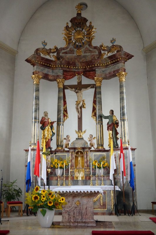 Die kleine Rundreise endete in der Kirche "Maria, Mutter der Kirche" in Maikammer, wo auch das Pfarrhaus und das Pfarrbüro von Pfarrer Peter Nirmaier ist. Auch dieses Gotteshaus ist von beeindruckender Schönheit und zur Zeit mit vielen Sonnenblumen geschmückt.