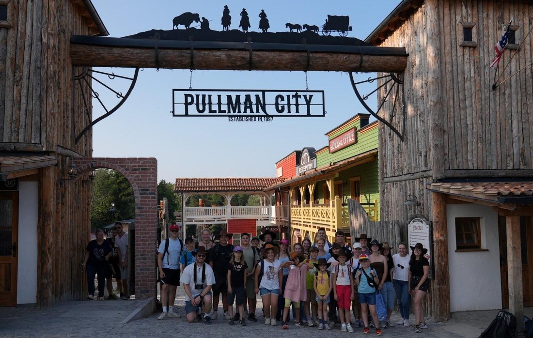 Wie immer gab es einen Tagesausflug, der dieses Mal in die Westernstadt Pullman-City führte. Dort ist das Leben im Wilden Westen mehr oder weniger echt nachgestellt. Es gibt einen Saloon, Tipis, ein Gefängnis, einen Friedhof und sogar eine Kirche. Es gab mehrere Shows zu bestaunen. Höhepunkt war jedoch das Theaterstück "Unter Geiern - Der Geist des Llano Estacado" nach Karl May, das mit rund 80 Schauspieler/innen, vielen Pferden und einer Menge Pyrotechnik alle begeisterte.
