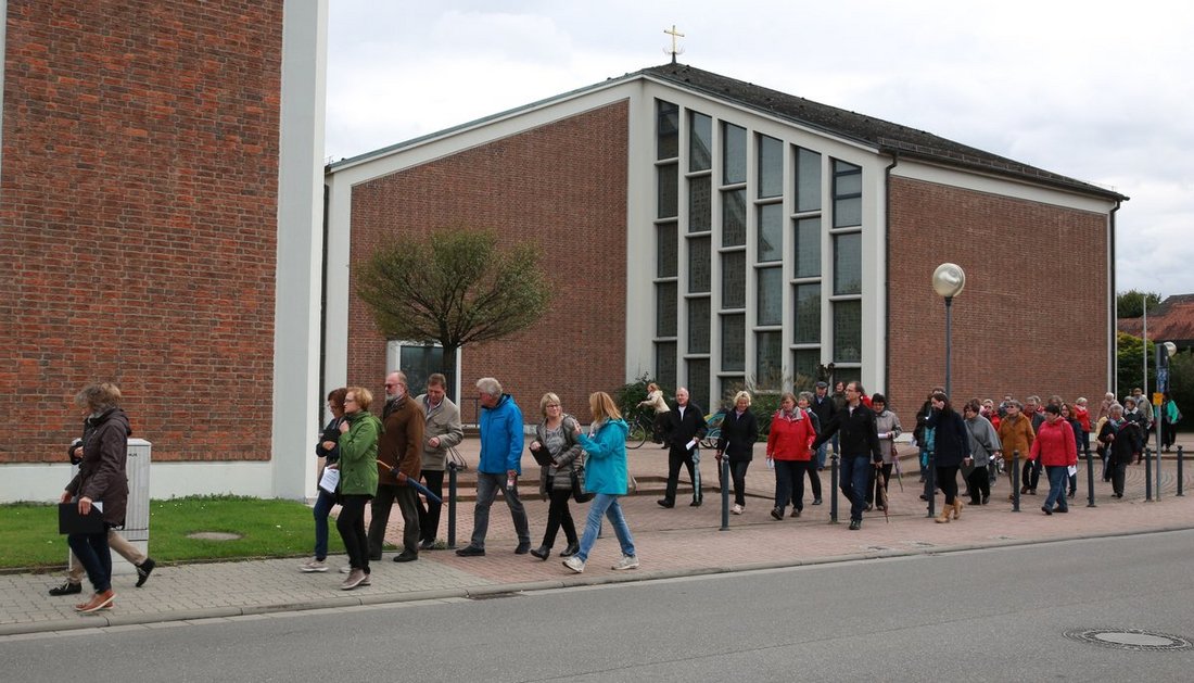 Der Oktober gilt seit dem Mittelalter als Rosenkranzmonat und ist - wie auch der Mai - der Gottesmutter Maria geweiht. Dies nahm der Chor der Herz Jesu Kirche zum Anlass, ihr besonders zu gedenken und sie zu loben und zu ehren. Deshalb hatten die Sängerinnen und Sänger unter dem Motto „Unterwegs mit Maria“ am Sonntagnachmittag, 08.10.2017, zu einer Rundwanderung mit verschiedenen Stationen eingeladen.