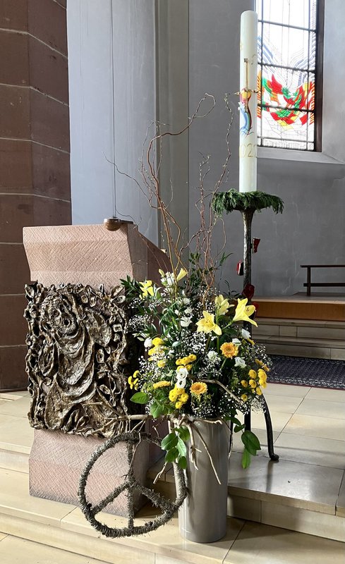 Als Zeichen für die österliche Befreiung aus dem Tod nannte er die Osterkerze, die in der Osternacht gesegnet und entzündet wurde. "Sie ist wiederum von Mitgliedern unserer Gemeinde gestaltet worden. Die treibende Idee dazu war der Wunsch nach Frieden. Gerade im Hinblick auf den Krieg in der Ukraine ist Hoffnung sehr wichtig", hob der Seelsorger hervor. Denn die Osterkerze widerspreche der Hoffnungslosigkeit.