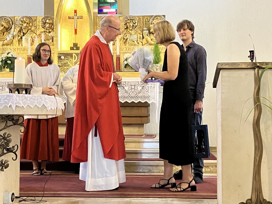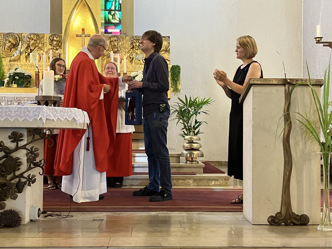Pfarrer Stefan Mühl dankte ihm am Ende des Festgottesdienstes, der seinen musikalischen Abschluss bildete. Der beliebte junge Mann habe seine Aufgaben mit Leidenschaft und Begeisterung erfüllt. Zahlreiche schöne Konzerte und schwungvolle Gottesdienste konnten unter seiner Leitung aufgeführt und mitgestaltet werden. Im Namen der Pfarrei und der Gemeinde St. Laurentius sprach Pfarrer Stefan Mühl dem scheidenden Max Truderung ein herzliches Dankeschön für sein großes Engagement aus, wünschte ihm alles Gute und Gottes Segen für seinen weiteren Lebensweg.