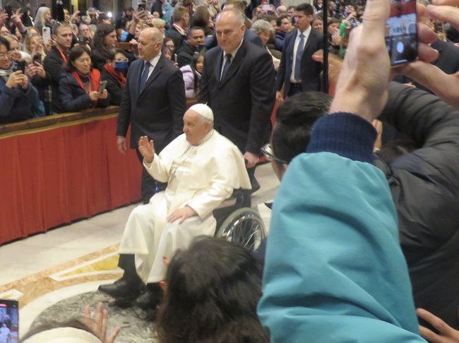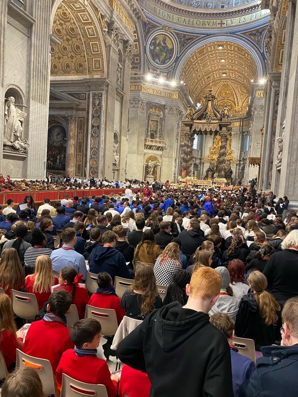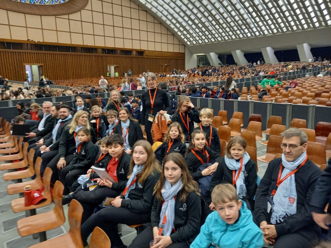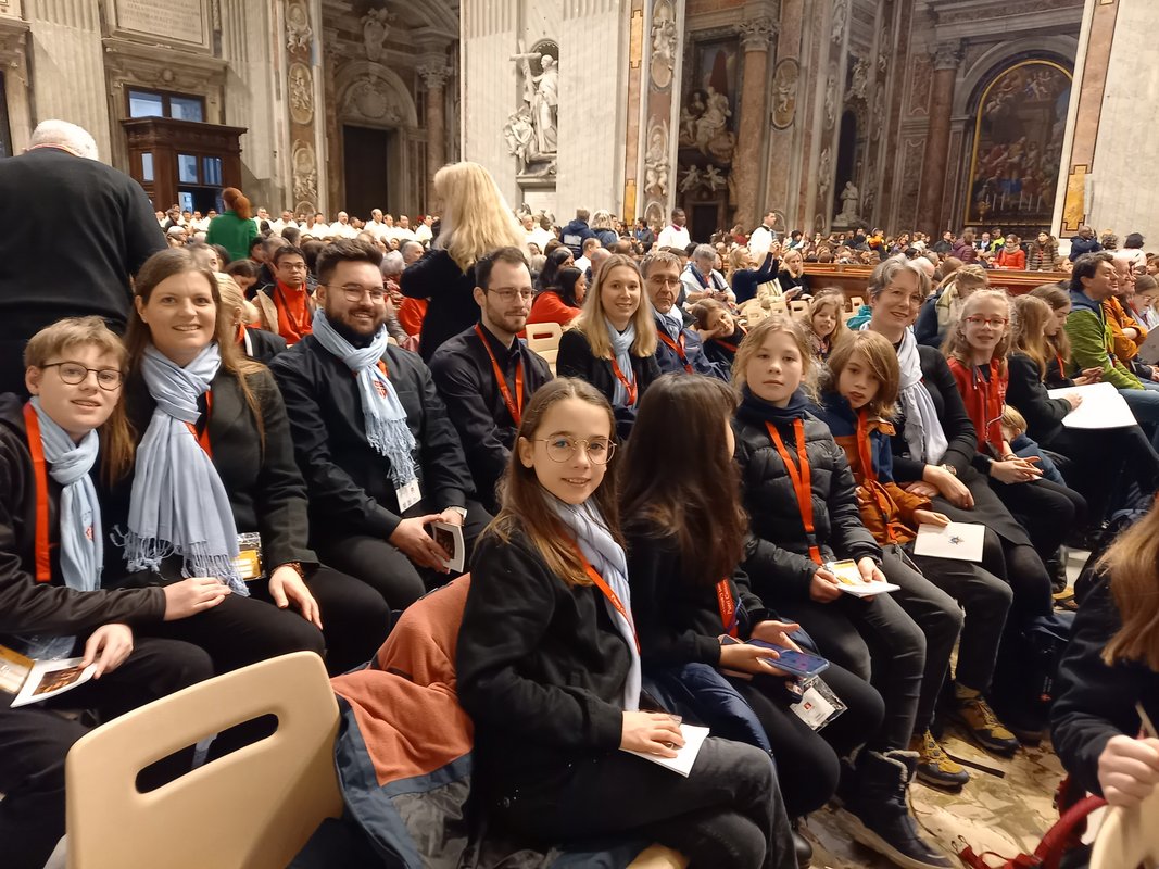 Als der Papst eingezogen ist, haben alle gejubelt und waren sehr ergriffen. Er hielt eine lange Ansprache an alle singenden Kinder und Jugendlichen in italienisch. Dabei lobte er die Sängerinnen und Sänger und rief sie dazu auf, ihre Begeisterung in die Welt hinaus zu tragen. Dieses einmalige Ereignis ist schwer in Worte zu fassen.