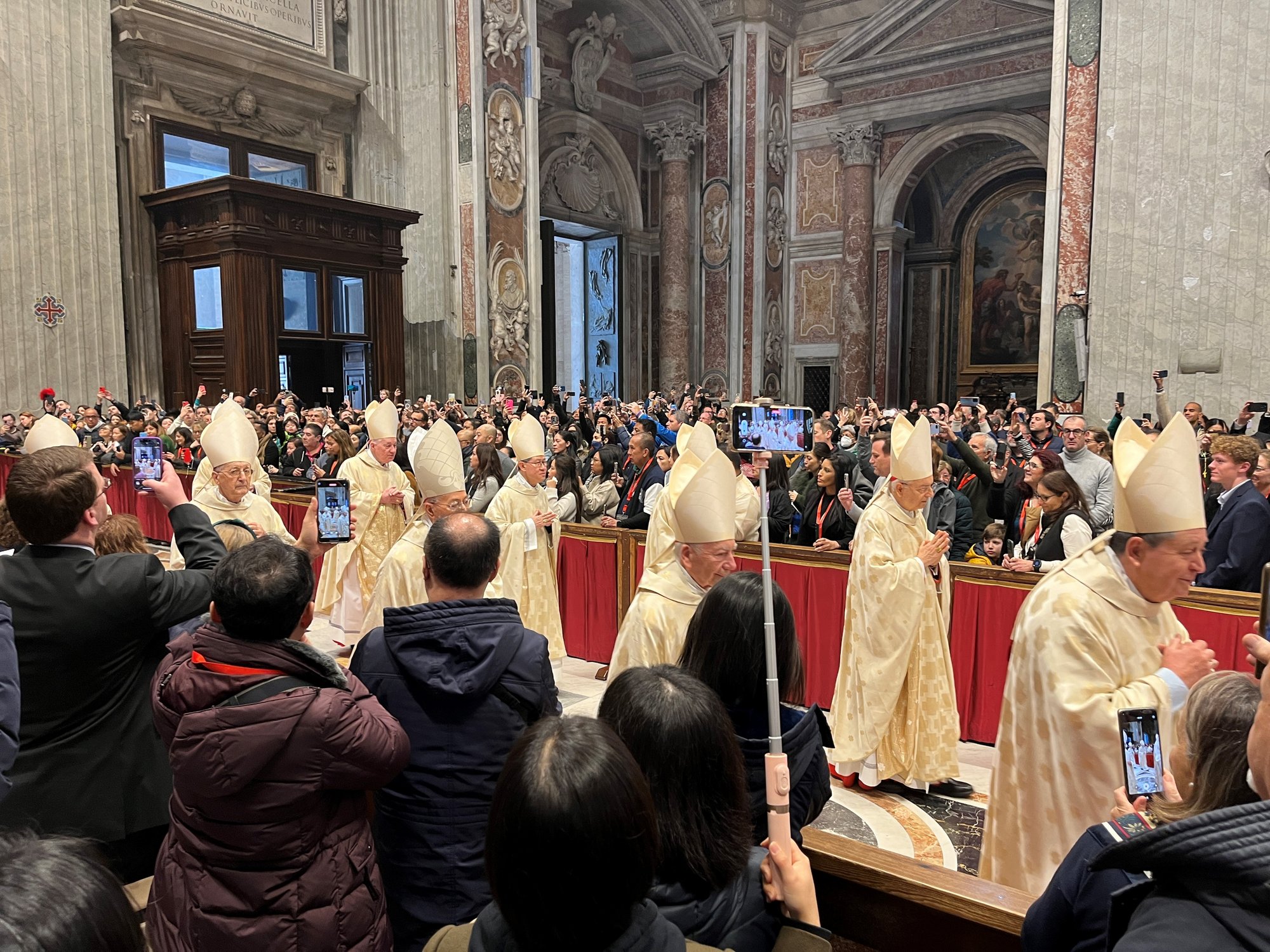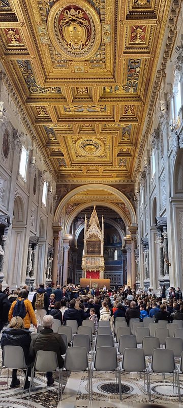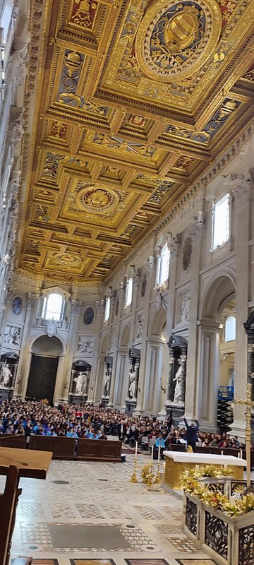 Nach einer emotionalen Eröffnungsfeier gestern Abend, ging es heute morgen zur Messe der Nationen in San Giovanni Laterano. In dieser beeindruckenden Kirche durften wir mit allen deutschsprachigen Chören einen Gottesdienst mitgestalten. Dieser wurde vom Mainzer Bischof Peter Kohlgraf zelebriert, der seine Mainzer Domchöre auf dem Festival begleitet. Das war ein einmaliges Erlebnis für uns alle.