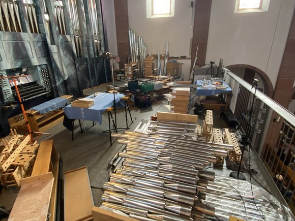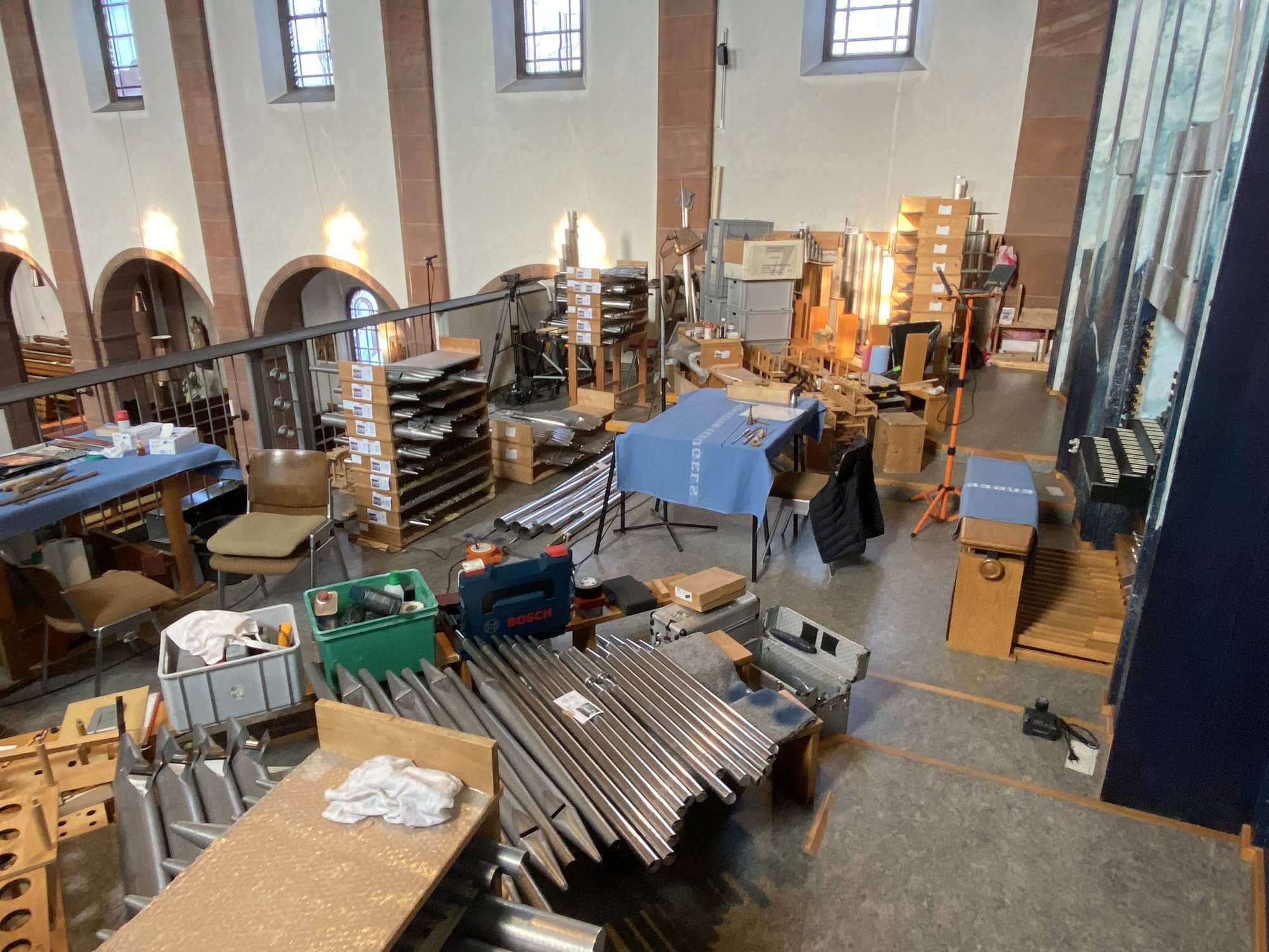Blick auf das "geordnete Chaos" der Orgelbauer