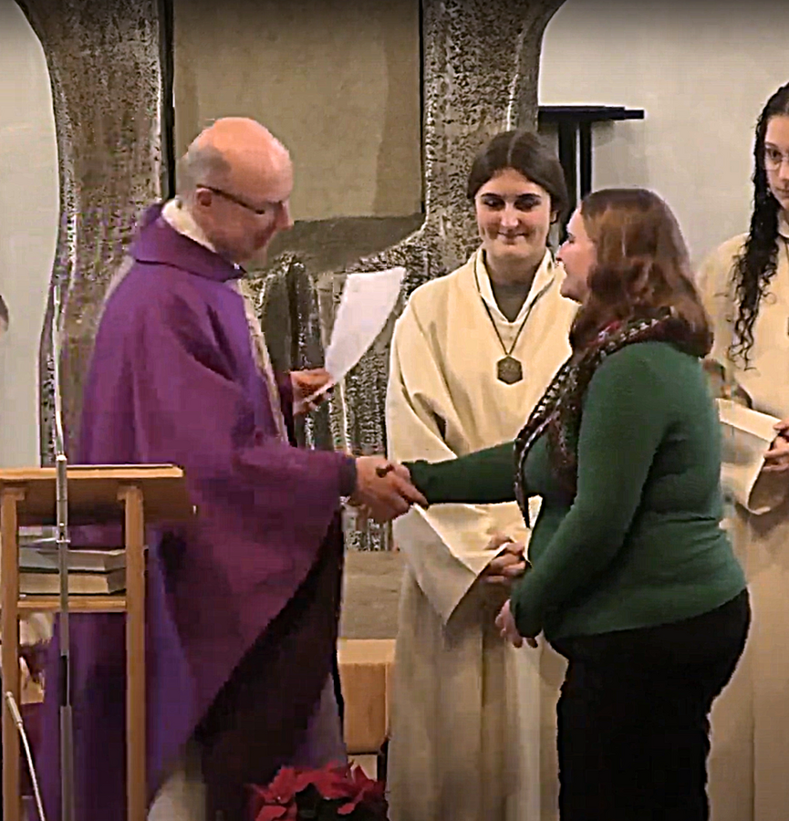 Im Rahmen des Gottesdienstes am Sonntag, 01.12.2024 in St. Jakobus übergab Pfarrer Stefan Mühl die Bischöfliche Beauftragung an Frau Tanja Christen zur Austeilung der Kommunion.