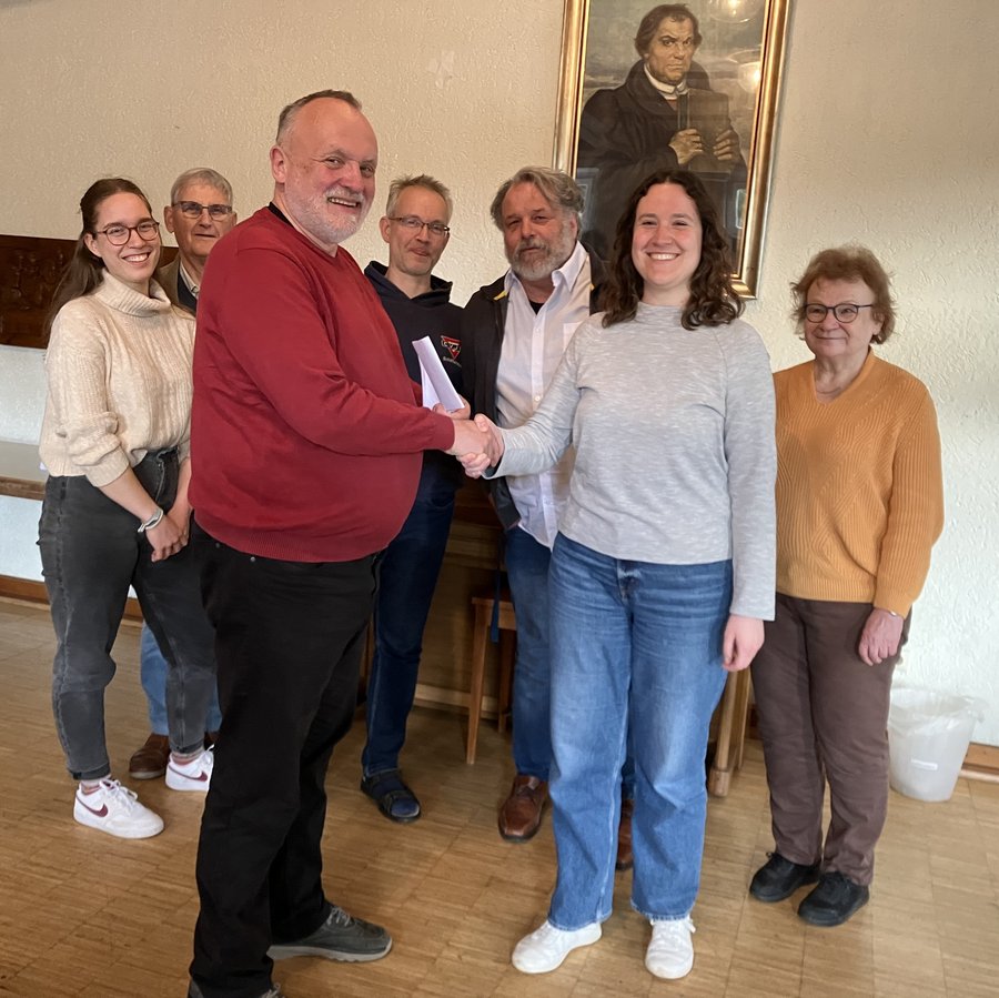 Gleich zwei Anlässe gab es für das Ökumenische Hungermarschteam am Donnerstagabend, 18. April, in das Gemeindehaus in der Langgasse einzuladen. Zum einen die Spendenübergabe aus dem letztjährigen Hungermarsch und zum anderen die Vorstellung des neuen Projektes anlässlich des diesjährigen Hungermarsches. Zunächst begrüßte Pfarrer Michael Erlenwein die Vorsitzende des ► Fördervereins "MANTHOC Cajamarca e.V." Annette Heil. Denn dieser Verein wurde 2023 unterstützt. Der Erlös wird für eine wetterfeste und komplette Überdachung des Schulhofs der MANTHOC Grundschule verwendet werden. "Die gewünschte Überdachung soll sowohl dem Regen- als auch dem Sonnenschutz während der Pausen und Sportunterrichts dienen, der dort ebenfalls stattfindet", erläuterte Annette Heil. Da die rund 200.000 Einwohner zählende Stadt Cajamarca auf etwa 2700 Meter Höhe in den nördlichen Anden Perus liege, sei die Sonnenstrahlung dort sehr stark. In der Regenzeit von Oktober bis März komme es vermehrt zu heftigen Regenfällen."