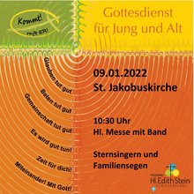 Am Sonntag, 09. Januar 2022, 10.30 Uhr - mit Sternsingern und Band