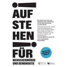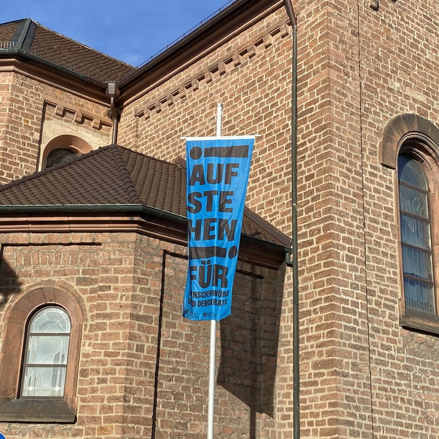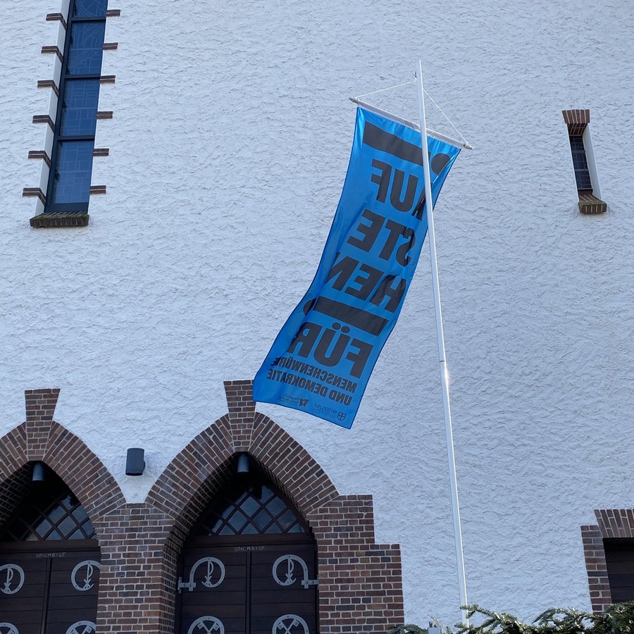Die Kirchen der Pfalz und Saarpfalz stehen gemeinsam auf für Menschenwürde und Demokratie - Kampagnenfahnen wehen an den Kirchen