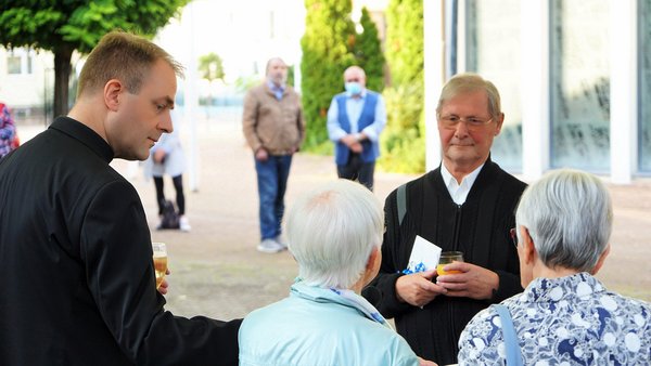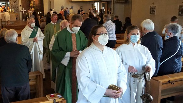 Unter dem Motto "Wo zwei oder drei in meinem Namen versammelt sind" durften aber auch zwei Kinder in diesem Gottesdienst die Heilige Kommunion empfangen. Dabei hob der scheidende Pfarrer in seiner Predigt hervor, dass die Gottes- und Nächstenliebe der Kern der christlichen Botschaft sei.