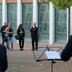 Nach dem Gottesdienst gab es Gelegenheit, sich bei einem Umtrunk im Pfarrheimhof persönlich von Pfarrer Gerhard Grewer zu verabschieden, wobei ihm eine Abordnung des Musikvereins 1974 unter Leitung von Carina Baumann-Laufer zuerst musikalische Grüße übermittelte, wie auch im Laufe des Abends. Dabei durften auch wohlgemeinte Grußworte an den nun sich im Ruhestand befindlichen Pfarrer nicht fehlen.