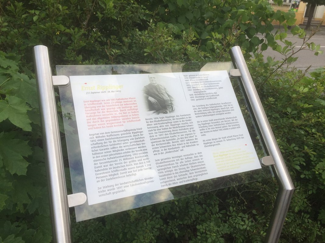Dank der Initiative des Vereins der Heimatpflege, der Pfarrei Heilige Edith Stein und der Stadt Schifferstadt wurde es möglich, dem bisher namenlosen Platz vor der St. Jakobuskirche Pfarrer Ernst Ripplinger zu widmen. Dies erfolgte nun am Sonntagvormittag, 5. Mai 2019 im Rahmen einer Festveranstaltung, die mit einem Gottesdienst in der Pfarrkirche begann.