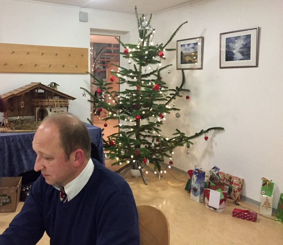 Pastoralreferent Heinrich Schmith erzählte dazu die Geschichte eines kleinen Jungen, der sich so in die von seinem Großvater geschnitzten Krippenfiguren vertiefte, dass sich seine Gedanken mit der Welt der Figuren vermischten, denn er stand plötzlich vor dem Kind in der Krippe und bemerkte, dass er als einziger kein Geschenk dabei hatte. Deshalb versprach er ihm sein schönstes Geschenk von Weihnachten. Doch das Kind in der Krippe habe nur lächelnd den Kopf geschüttelt und sich das gewünscht, was im Leben des Jungen misslungen und falsch gelaufen sei. "Denn ich bin in die Welt gekommen, um Dir zu verzeihen, dich an die Hand zu nehmen, dir den Weg zu zeigen und Frieden auf die Welt zu bringen", sagte es zu dem daraufhin erstaunten Jungen.