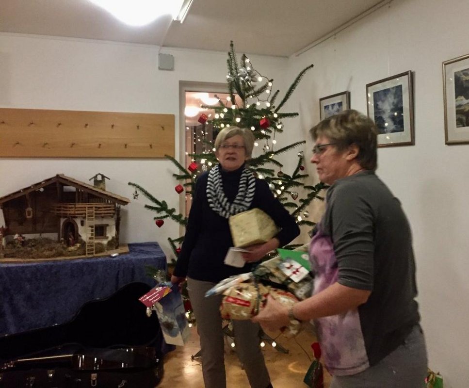 Doch aus dieser schönen Weihnachtsbotschaft heraus dürfe man aber auch über Geschenke glücklich sein, die Menschen aus Freude über Jesus Geburt machen würden, meinte Heinrich Schmith. Dies konnte am Ende des Gottesdienste gleich in die Tat umgesetzt werden. Denn es wurden 46 liebevoll verpackte Weihnachtsgeschenke an die Bewohnerinnen und Bewohner der Lebenshilfe verteilt, die mit großer Begeisterung ausgepackt und stolz herumgezeigt wurden. Insgesamt konnten bei der diesmaligen Wunschzettel-Aktion 120 Wünsche erfüllt werden, die außerdem an bedürftige, alleinstehende zu betreuende Menschen in Schifferstadt, die ihre eigenen Geschäfte nicht mehr regeln können gingen, ebenso an die Besucher der Ökumenischen Suppenküche, an alleinstehende Jugendliche der Jugendstrafvollzugsanstalt und an Asylbewerber.