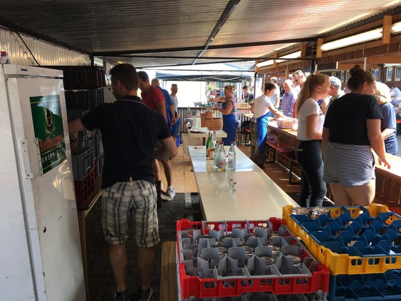 Nach dem Festgottesdienst konnte sich auf dem Gelände der Grundschule Süd mit einem vielseitigen Getränke- und Speiseangebot gestärkt werden, wobei auch der am Sonntag zusätzlich zubereitete "Tafelspitz mit Meerrettich" großen Absatz fand und nach der Mittagszeit ausverkauft war, auch das reichhaltig bestückte Kuchenbuffet am späten Nachmittag, so dass der Waffelstand der Messdiener gefragt war, ebenso deren Cocktailstand mit erfrischenden Getränken mit und ohne Alkohol.