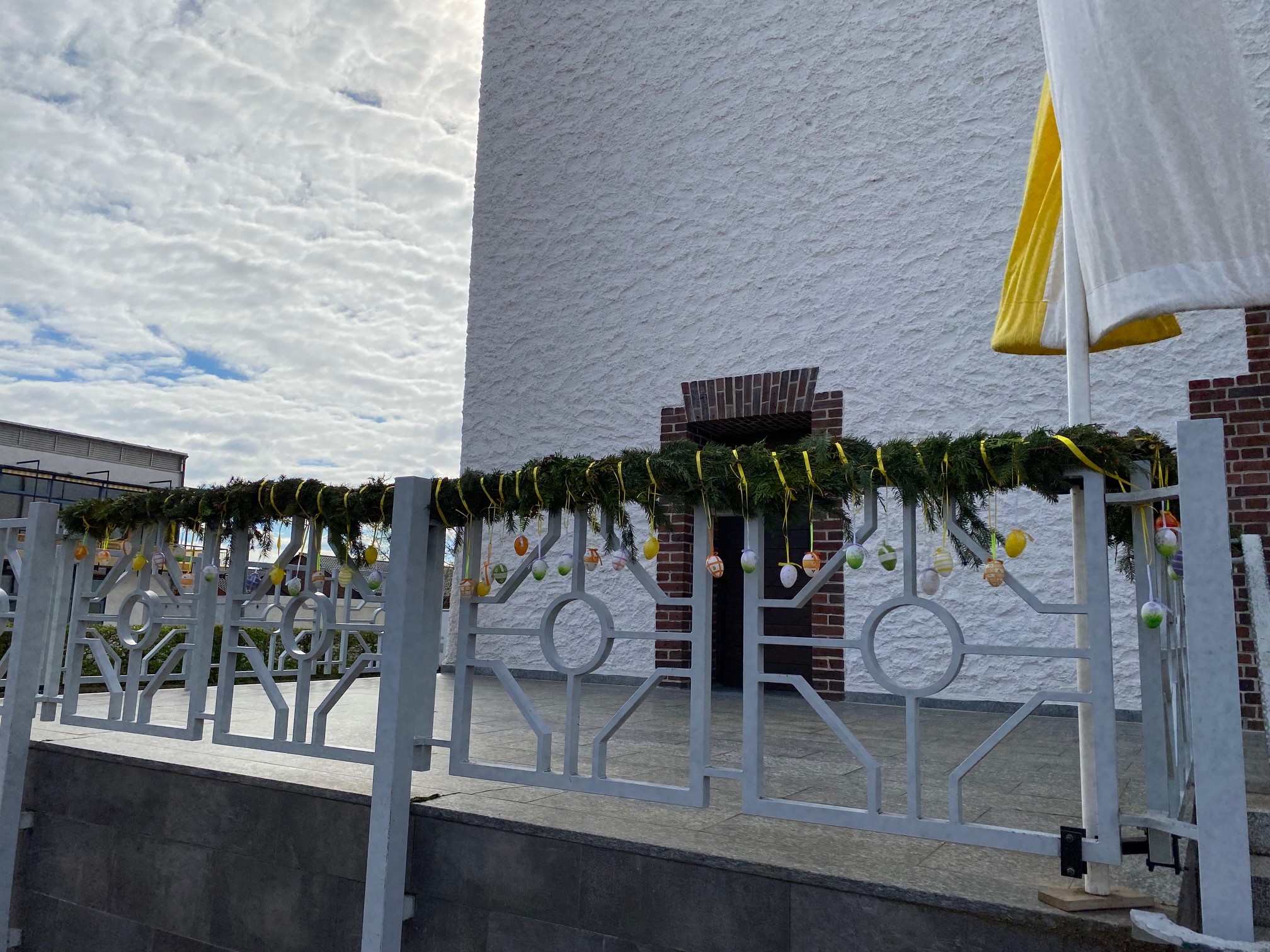 Traditionell mit Ostereiern haben wir unseren Eingang zur Kirche geschmückt.