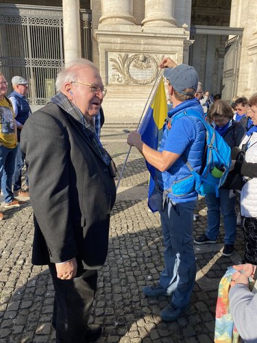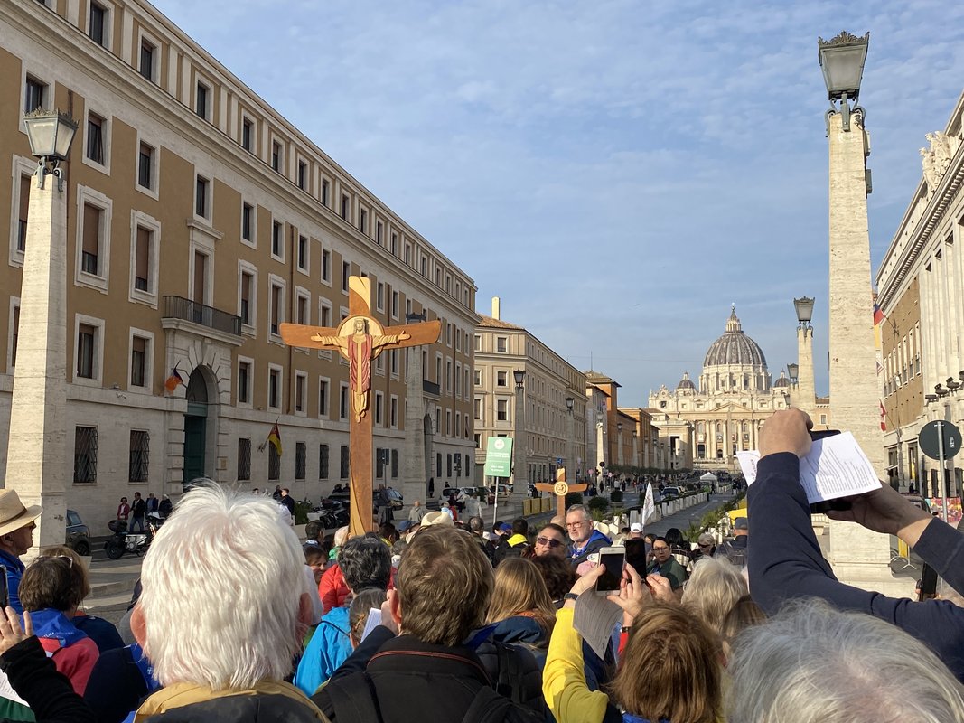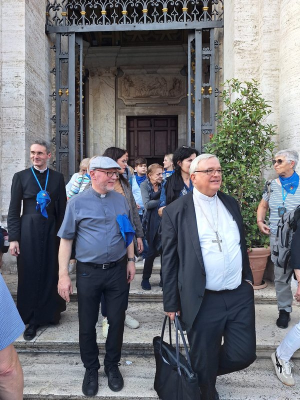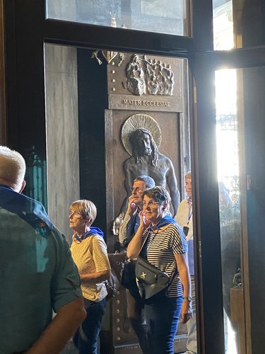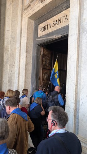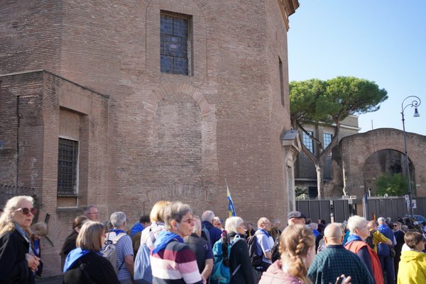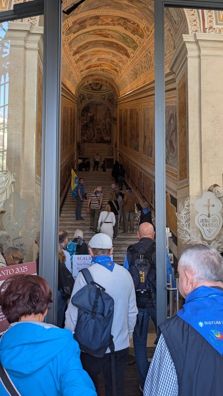 Wieder ist ein Tag unserer Wallfahrt vorbei, und schon haben wir Halbzeit. Heute ging es ins Zentrum der Weltkirche, in den Vatikan. Gemeinsam mit den anderen Speyerer Wallfahrerinnen und Wallfahrern versammelten wir uns am Morgen unterhalb der Engelsburg, um einen Pilgerweg über die Via della Conziliazone zum Petersdom zu gehen. Auf diesem Weg gab es Psalmverse und Gedanken zum Motto "Pilger der Hoffnung". Mehrmals sangen wir "Meine Hoffnung und meine Freude". Wir zogen durch die Hl. Pforte, die Papst Franziskus an Weihnachten 2024 geöffnet hatte, durch den Dom zur Confessio über dem Petrusgrab, wo wir unseren Glauben bekannten. Auch dieser Weg war wieder eine besondere Erfahrung im Heiligen Jahr!