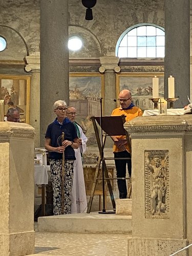 Dank galt es auch den Menschen zu sagen, die zum Gelingen dieser Woche beigetragen hatten: So dankte Pfarrer Mühl der gesamten Gruppe, die sich auf das "Abenteuer Rom" eingelassen hatte und an vielen Stellen durch Hilfsbereitschaft und Freundlichkeit die Reise für alle angenehmer machte; dem Fahnenträger, der immer Orientierung gab; den drei Messdienerinnen, die ihren Dienst in fremden Kirchen, mit fremden Zelebranten und vor großem "Publikum" souverän ausübten; den Fotografen und dem Verantwortlichen für die Homepage; denen, die bereit waren, eine Kleingruppe zu leiten oder beim Navigieren durch die Stadt zu helfen; den Busfahrern und allen anderen, die jetzt unerwähnt bleiben.