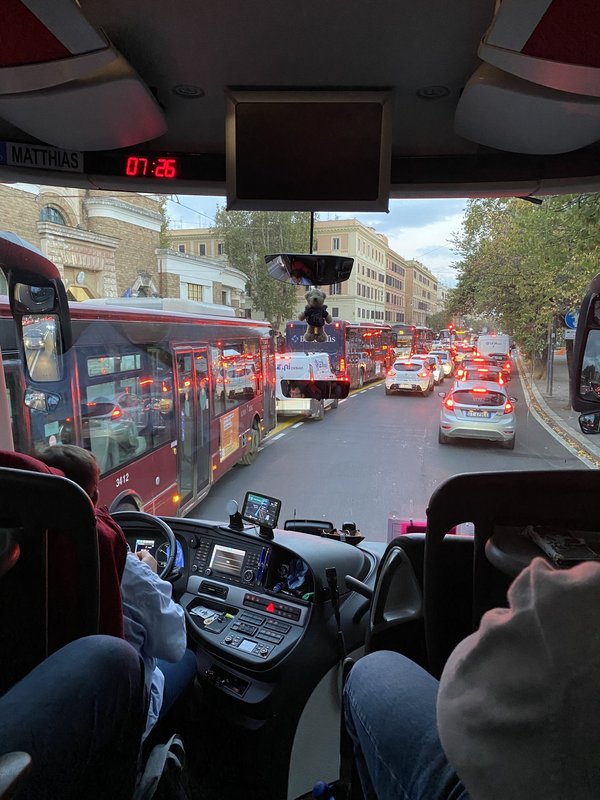 Wie immer waren alle pünktlich am Bus. Unser Busfahrer Matthias steuerte uns wieder mit großer Ruhe und Gelassenheit durch den dichten römischen Feierabendverkehr.