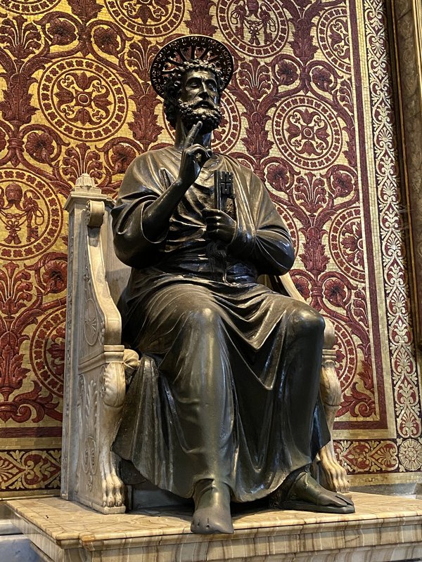 Nach dem Gottesdienst gab es eine Führung durch den Petersdom, bei dem einige der Kunstwerke erschlossen wurden, aber auch die beeindruckende Größe der Kirche erfahrbar wurde. Leider reichte für die meisten Teilnehmerinnen und Teilnehmer die Zeit nicht, um die Kuppel und die Krypta mit den Papstgräbern zu besuchen.