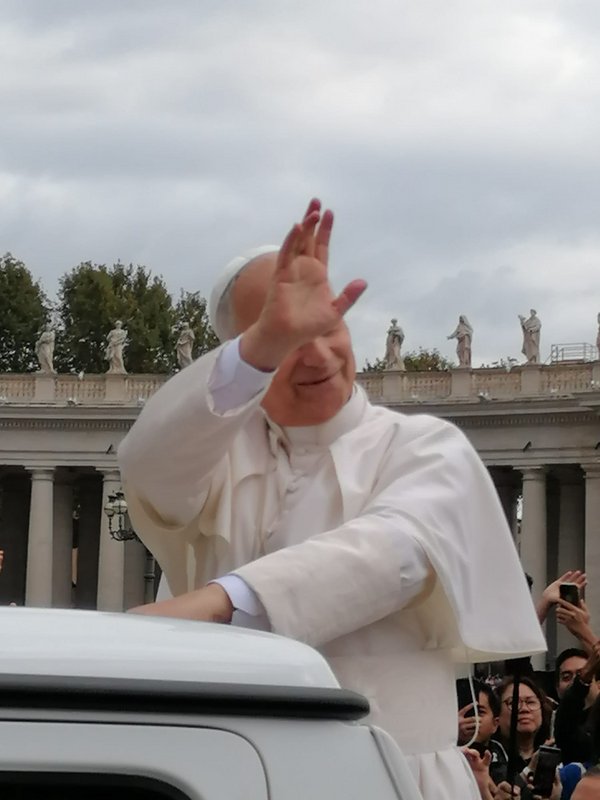 - Die Audienz mit dem Papst und seine Nähe (Vorbeifahren im Auto)