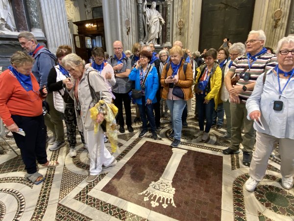 Unterwegs gab es Gedanken zur Bedeutung des Heiligen Jahres und dem Motto "Pilger der Hoffnung" durch Pfarrer Mühl. Pastoralreferent Heinrich Schmith übte mit der Gruppe einige Lieder aus dem Wallfahrtsheft ein, und es gab auch einen kleinen Italienisch-Kurs. Außerdem konnte man alte Bekanntschaften auffrischen oder neue knüpfen.