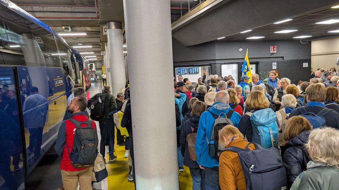 Wegen unvorhersehbarer Schwierigkeiten konnten wir unsere Rückreise nicht wie geplant am Morgen antreten. Die Abfahrt verzögerte sich um einige Stunden. Die dadurch gewonnene Zeit im Hotel nutzten einige, um nach den Strapazen der letzten Tage etwas länger zu schlafen oder auch ausgiebig zu frühstücken ohne lange Schlange an der Kaffeemaschine. Bei allen notwendigen Umplanungen wussten wir uns durch die Busunternehmen Eisinger und Hetzler sowie das Bayerische Pilgerbüro sehr gut unterstützt.