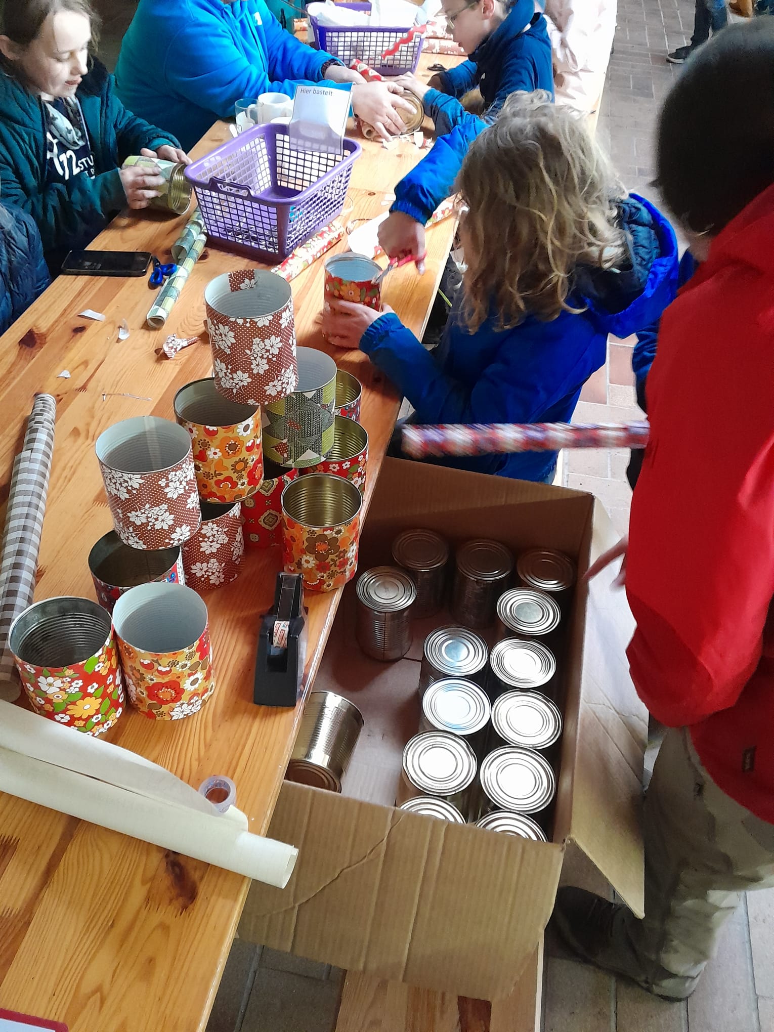 - Gestaltet zum Abschluss ein Kinderfest mit nachhaltiger Dekoration (Wimpelketten aus SToff), Dosenwerfen und weiteren Spielstationen.
