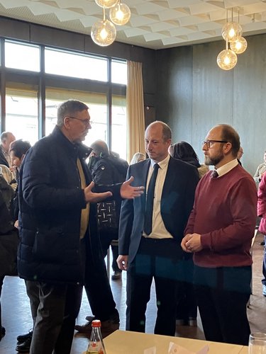 Im Anschluss an den Gottesdienst gab es bei einem Umtrunk im Pfarrheim St. Jakobus noch die Gelegenheit, mit dem neuen Pfarrer ins Gespräch zu kommen, wovon reichlich Gelegenheit gemacht wurde. Unter den zahlreichen Gästen waren unter anderem Pfarrer Ralf Feix, Pastoralreferentin i.R. Regina Mettlach und Michael Binder von der Neuapostolischen Kirche sowie Beigeordneter Patrick Poss in Vertretung von Bürgermeisterin Ilona Volk. Kinder der Jungen Kantorei unter Leitung von Eva Oberling begrüßten den neuen Pfarrer mit einem schönen Lied über Gottes Symphonie.