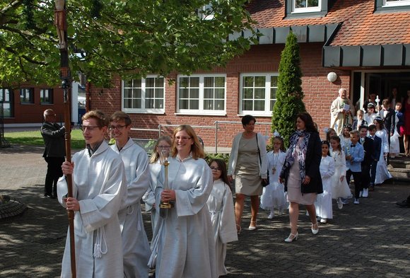 Ein großer Festtag erwartete die insgesamt 43 Kinder der Gemeinden St. Jakobus, St. Laurentius und Herz Jesu, welche die Feier der Erstkommunion unter dem Leitwort "Wo zwei oder drei in meinem Namen versammelt sind, da bin ich mitten unter ihnen", erleben durften. In St. Jakobus wurde die Erstkommunion am ersten Sonntag nach Ostern, am 28. April, und in Herz Jesu gemeinsam mit den Kindern von St. Laurentius am vergangenen Sonntag, 5. Mai, gefeiert. In beiden Gottesdiensten hatten einige Kommunionkinder, Eltern und Paten Lektorendienste übernommen.