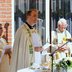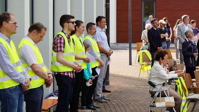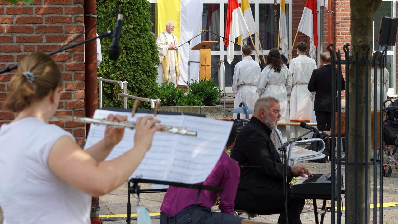Gottesdienst auf dem Platz vor der Herz Jesu Kirche und Prozession zur St. Laurentiuskirche