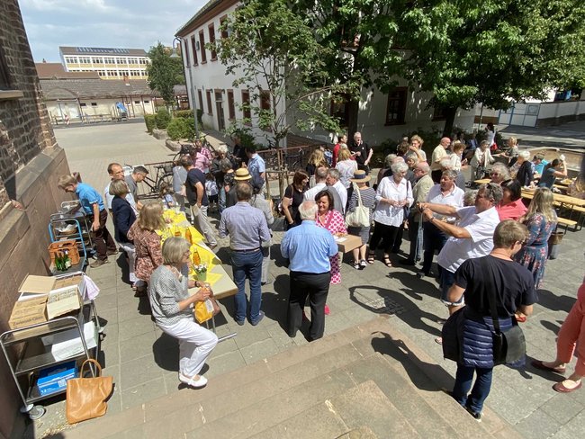 Im Anschluss hatte Pfarrer Albrecht Effler zu einem "Gruß aus dem Paradiesgarten" aus Deidenheim eingeladen, um die Festfreude mit einem Gläschen Wein teilen zu können.